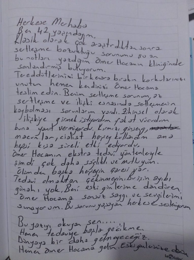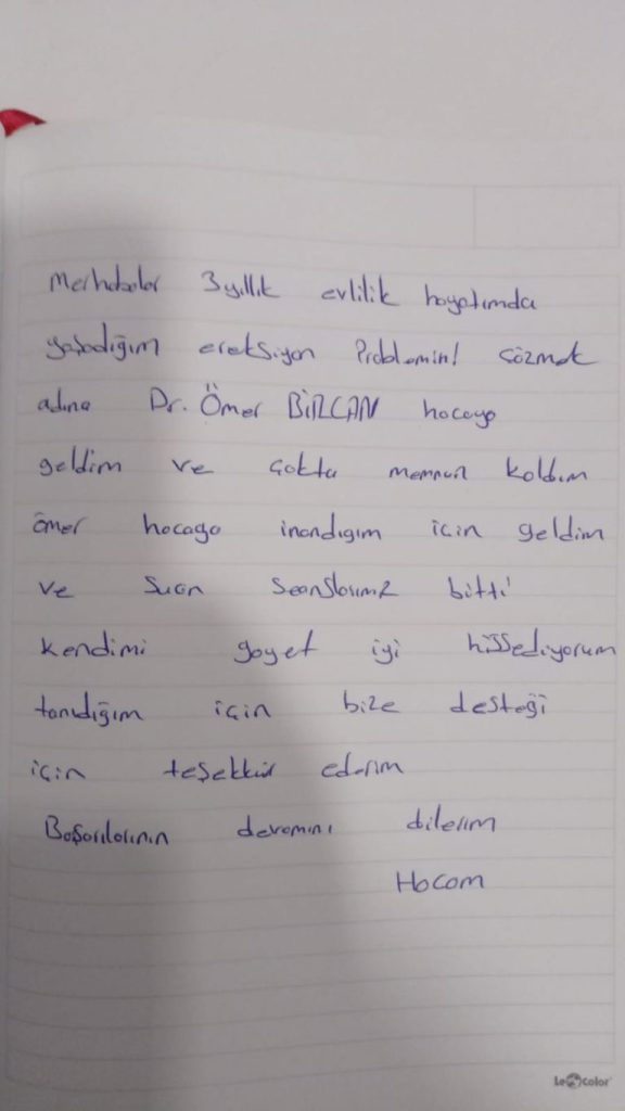 Birçok arkadaşıma ve ED (Ereksiyon Bozukluğu) hastası herkese Dr. Ömer’i tavsiye ettim. )