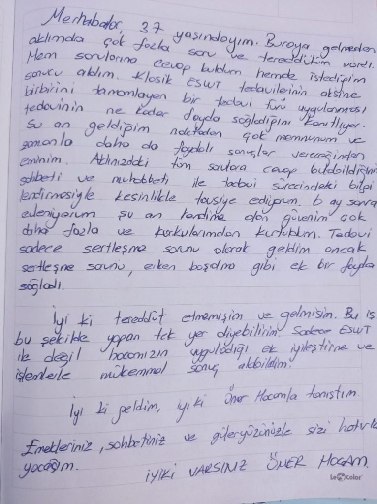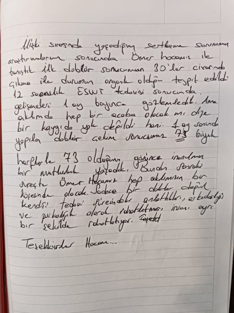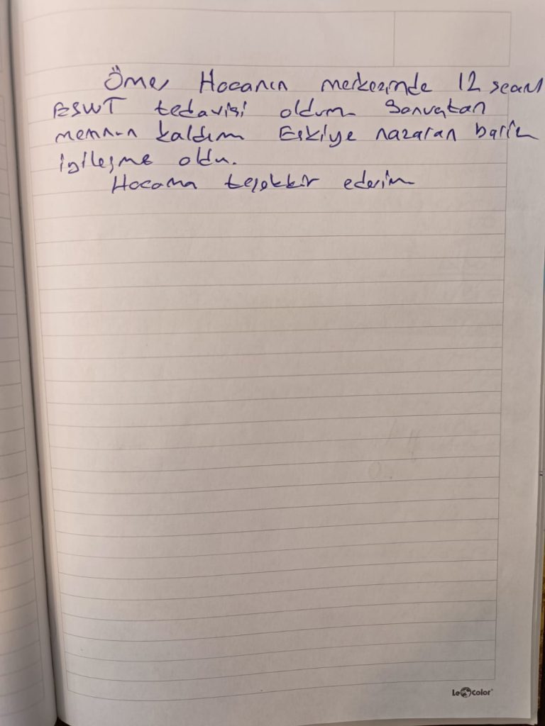 Ömer hocama ilk geldiğimde daha önce başka bir klinikte eswt tedavisi almıştım ve hiç bir etkisini görmemiştim.