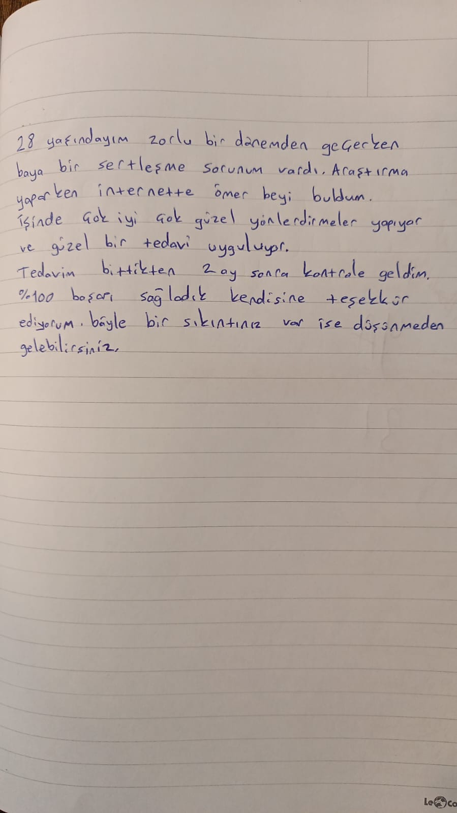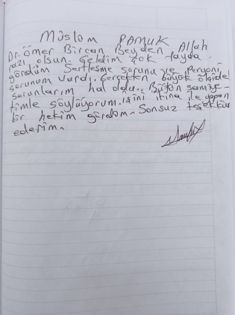 Dr. Ömer Beye sonsuz teşekkür ederim ve böyle sıkıntısı olan herkes tavsiye ederim.