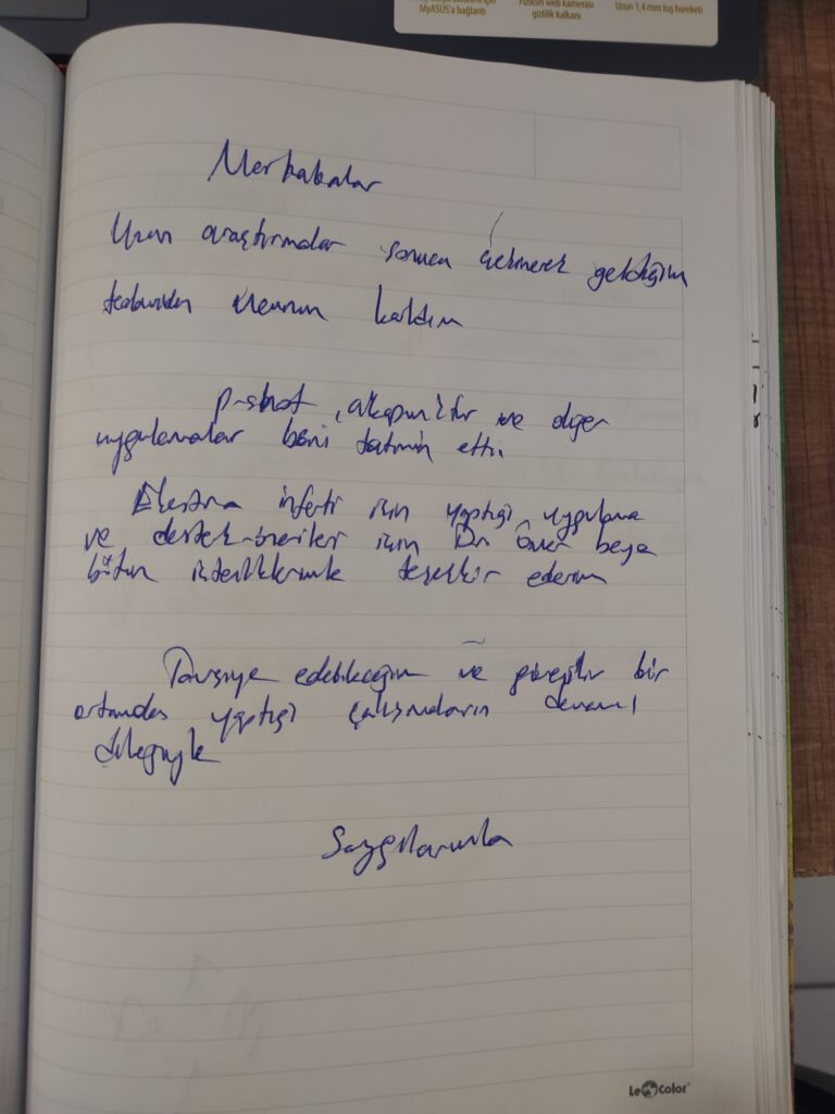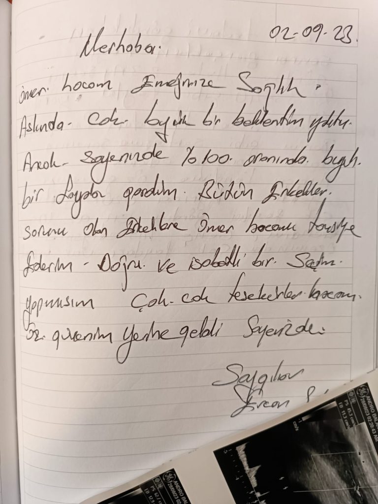 Dr. Ömer beyle ilk konuşmamızdan itibaren her şey söylediği gibi gelişti. Ona da buradan tekrar teşekkür ediyorum.