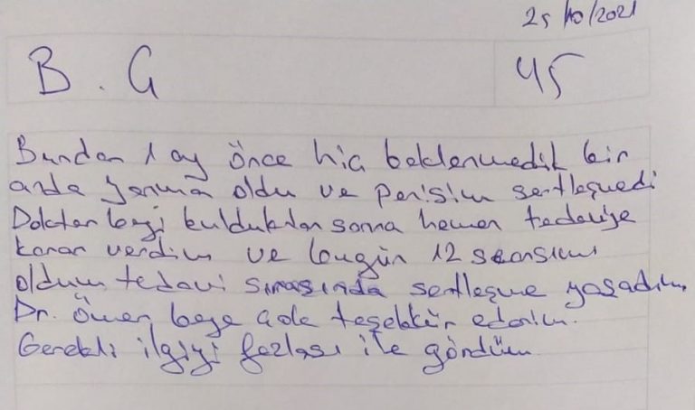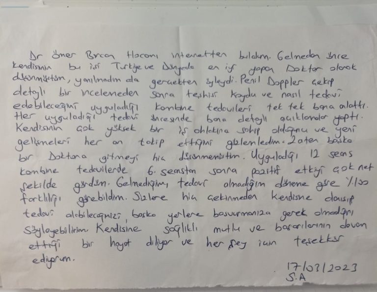İyi ki sizi buldum ve sizin önerinizi dinledim ve tedavi oldum. İyi ki varsınız …..
