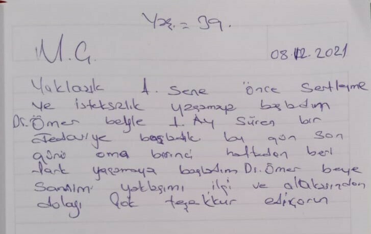 Tedavi süresince sürdürmüş olduğumuz hasta doktor ilişkimiz de oldukça iyidi.