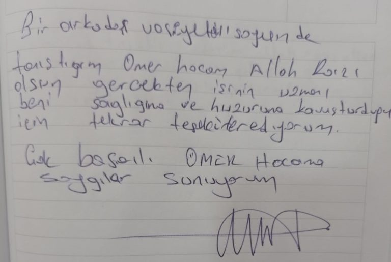 Dr. Ömer BİRCAN hocam’a ÇOK TEŞEKKÜR EDERİM